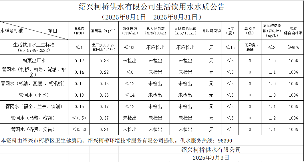 米兰注册水质公告(2025年8月1日—2025年8月31日)