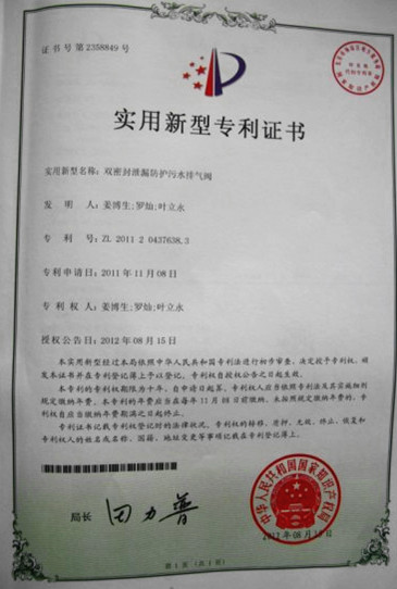 日前,集团“双密封泄漏防护污水排气阀”专利项目得到国家知识产权局正式批复,获实用新型专利授权。