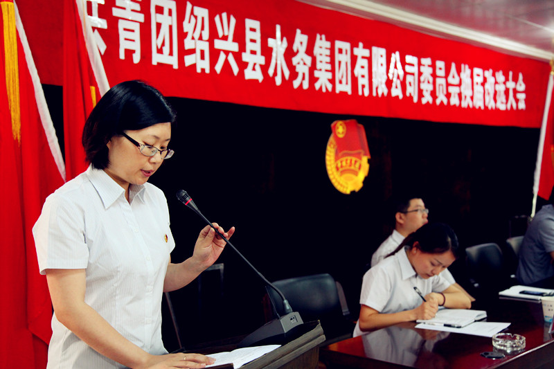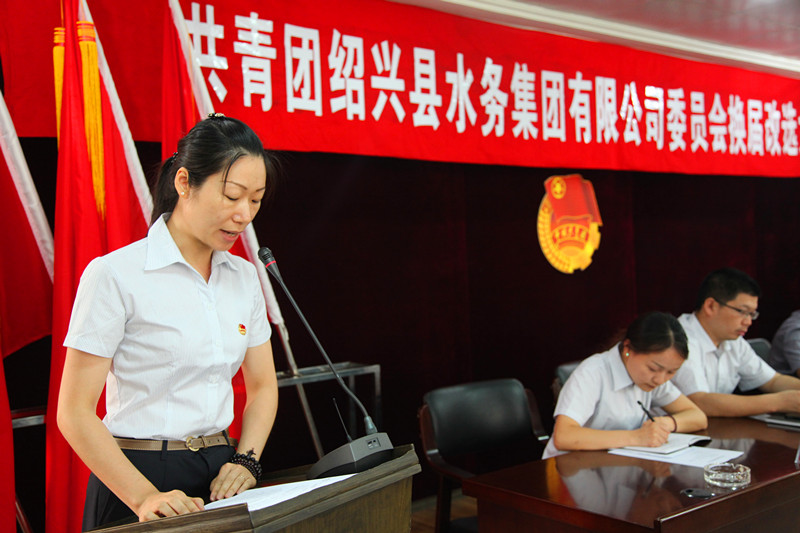 会议在雄壮的国歌声中开幕,集团第二届团委负责人林素菁在会上作《务实创新、与时俱进,为加快社会责任型企业建设谱写新的青春篇章》为主题的团委工作报告。报告指出自第二届团委换届改选以来,集团团委紧紧围绕集团党委的工作要求和指导,坚持“服务企业、服务青年”的工作方针,全力实施“青年文明工程”、“青年岗位成才计划”、“水务文化品牌建设”、“水务青年志愿者服务品牌塑造”等系列活动,全面加强团的建设,全力培养和造就青年人才,充分发挥生力军和突击队的作用,为推进集团公司的健康稳定发展,做出了共青团应有的贡献。五年来,集团团委先后获得了“绍兴市五四红旗团委”、“绍兴市先进团委”等荣誉称号;成功创建省级青年文明号1个、市级青年文明号6个,县级青年文明号12个;涌现出省级青年岗位能手1名,市级青年岗位能手2名,市级杰出青年岗位能手1名,水务志愿者服务队被评为市、县级志愿服务优秀集体。会议提出了下一阶段集团共青团工作的主攻方向是:以科学发展观为统领,围绕集团中心工作,积极探索有时代特征、有水务特色、有青年特点的共青团工作新路子,不断拓宽工作领域,创新团的工作机制,加强团的自身建设,团结带领广大团员青年为加快社会责任型企业建设而努力奋斗。