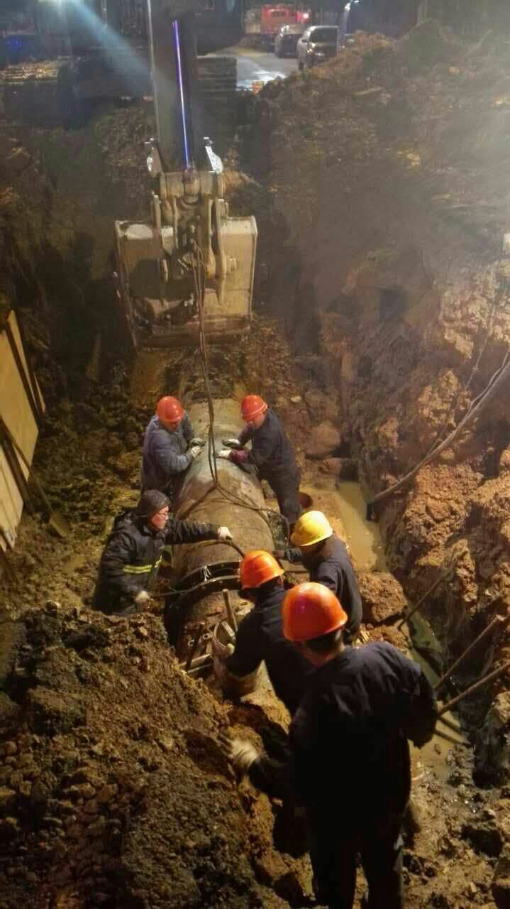 1月26日下午3点多,供水公司柯南分公司忽然发现位于兰亭镇娄宫集镇的直径800管爆管,分公司一方面安排专人进行交通疏导,另一方面抓紧组织人员进行抢修。抢修工程从当天下午4点半开始,连续作战,一直到27日凌晨4点左右结束,恢复通水。由于那几天一到后半夜,室外温度就降到零下数摄氏度,给抢修又带来难度,娄华庆等现场抢修人员,就分批轮流不间断作业,只为早日恢复供水。