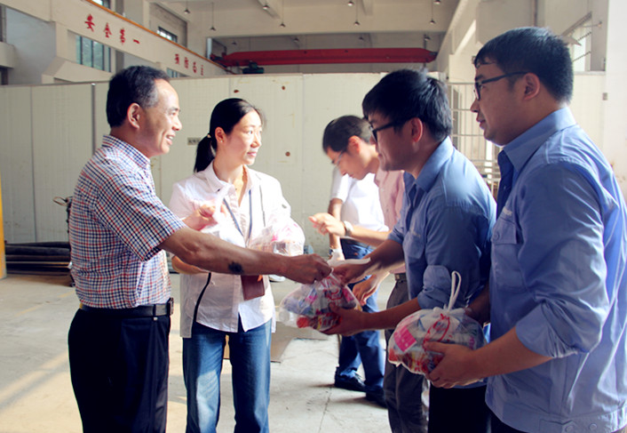 7月27日,集团公司开展高温慰问活动,集团公司董事长周俭、总经理单宝子等领导班子成员分六组深入生产建设现场,看望、慰问奋战在高温一线的广大职工,为他们送去了消暑饮料及毛巾等防暑用品,给他们带去丝丝“清凉”。