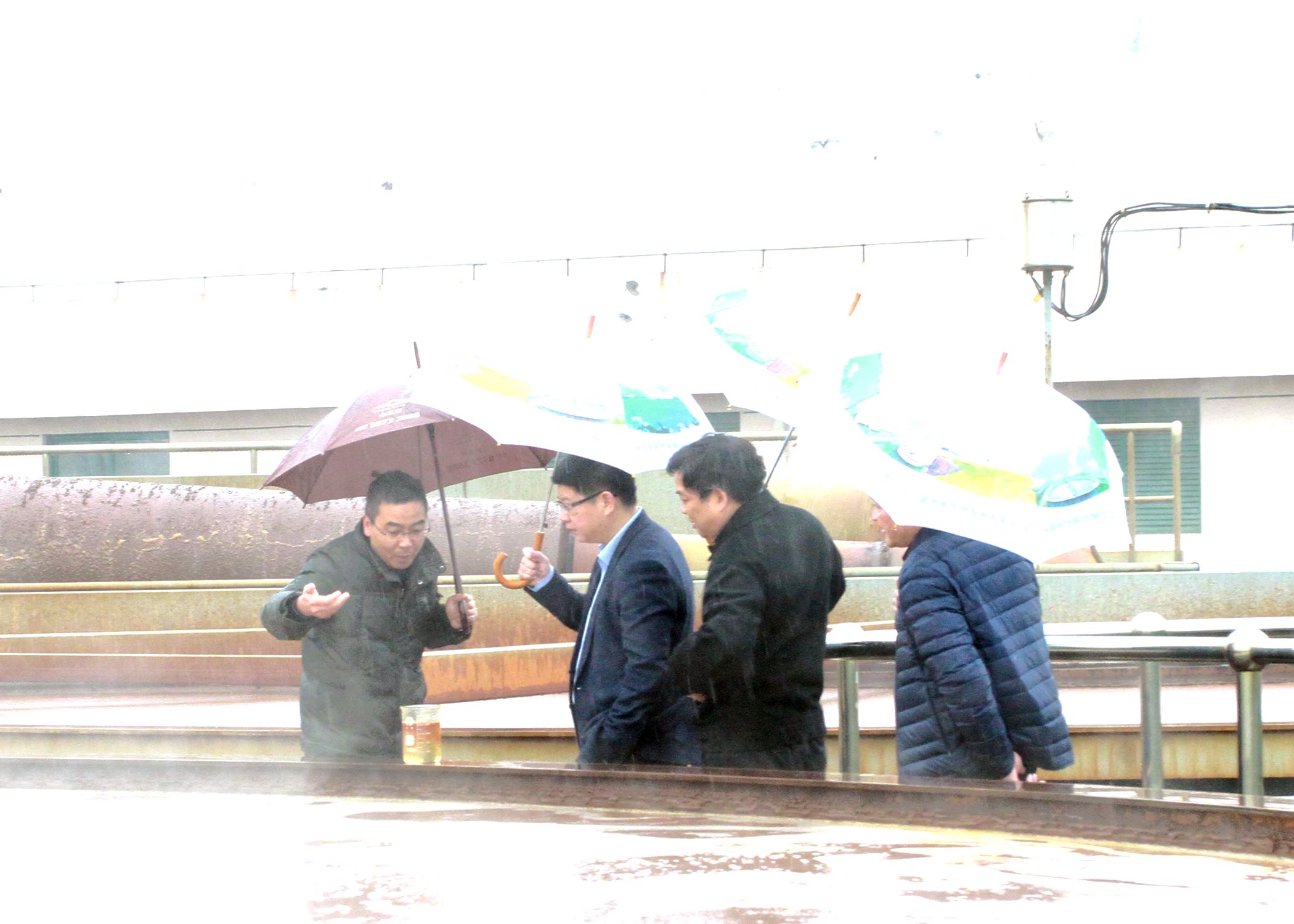 沈志江一行先后实地踏看了绍兴水处理公司污水处理气浮工艺流程及江滨水处理公司中控室,听取了两家公司污水污泥处理处置情况的汇报,详细了解了处理工艺、进出水各项指标等情况,还实地调研了绍兴水处理公司污泥委托处置单位——绍兴泰谱环保科技有限公司和绍兴环兴污泥处理有限公司。