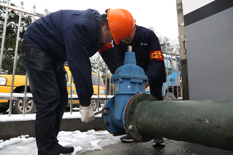冰冻来临前,我们及时启动雨雪冰冻灾害天气应急预案,制定应急停水、间歇性停水应急送水方案,实行领导干部和抢修人员、热线人员24 小时值班制,组建了应急抢修队和志愿突击队,提前准备5万余只水表,备足其他抢修物资7.1 万余件。