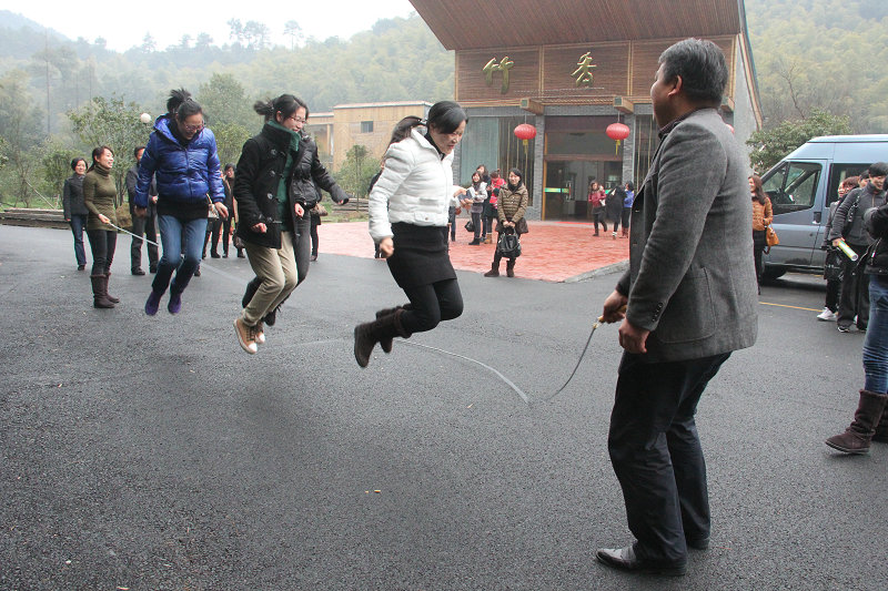名女职工到农庄欢度节日,跳绳、打球、踢键子