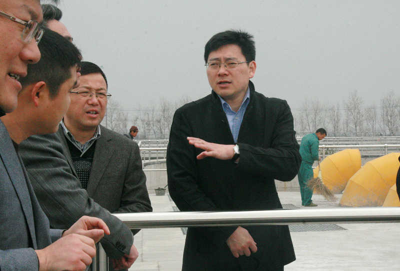 3月29日上午,县委常委金晓明到江滨水处理公司察看污水集中预处理工程(一期)进水情况,集团公司领导张则再陪同。