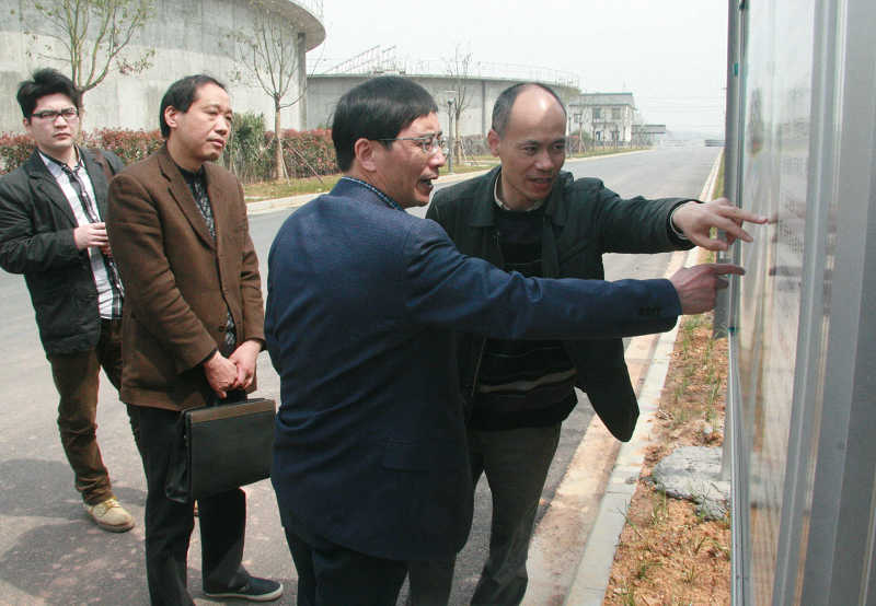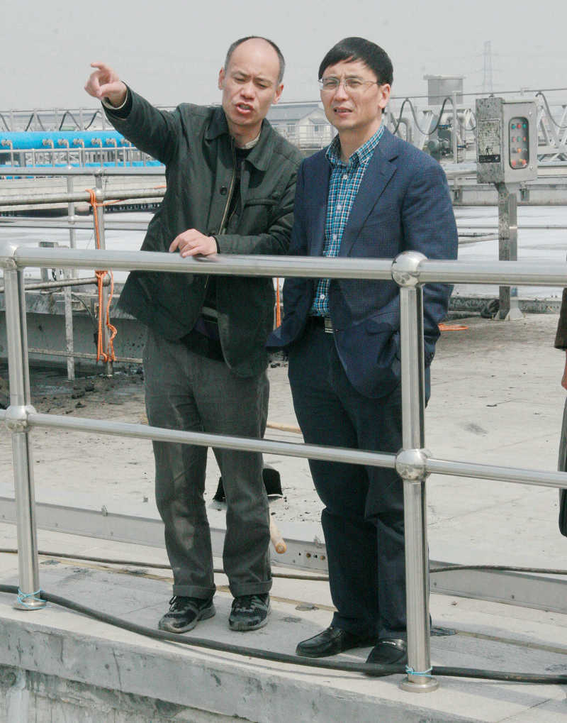 下午,绍兴市环保局副局长肖理生带队到江滨水处理公司实地调研印染产业集聚区污水集中预处理情况、县环保局领导陪同。