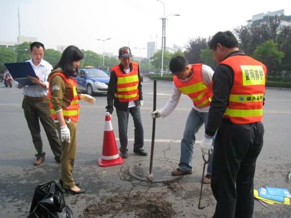 为防止窨井伤人事故的发生,消除安全隐患,5月份,公司发动全体党员分批开展窨井排查活动。