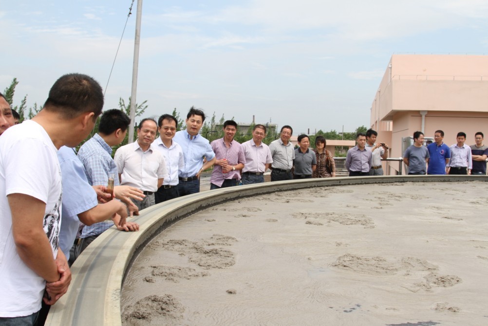 ,福全镇党委书记王勤率企业家代表一行40余人到绍兴水处理公司调研气浮项目。调研组实地参观了污水处理一期稳流池和气浮工程现场,仔细听取了技术人员对工艺技术的讲解,并对经气浮工艺处理前、后水样进行观测。随后,调研组一行在四楼会议室进行座谈,进一步了解有关情况。会上,印染企业老总纷纷表示,通过这次考察和交流,了解了污水处理的新工艺、新技术,对政府提出的纳管新要求充满了信心。