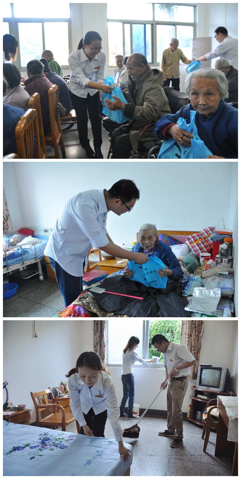 为发扬中华民族尊老爱老的传统美德,增强我公司青年志愿者尊老爱老的意识。58日上午,公司10多名志愿者来到柯桥夕阳红中心,为老人铺床打扫卫生,并将公司精心准备的蛋糕、水果、毛巾等慰问品一一送到老人们的手中,奉献自己的一份爱心。