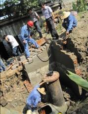 8月15日,位于金柯桥大道绍兴县公共服务中心附近的小舜江供水柯北支线DN800桥管因外力影响导致主管与排污管焊接处开裂漏水,影响整个柯北工业区及安昌、齐贤部分区域的供水压力,并导致大量自来水流失,为尽快消除受影响区域的低压现象,公司工程分公司在做好防暑降温的同时,冒着40℃的高温,抓紧抢修作业,经过近4个小时的抢修,赶在下午5点用水高峰前恢复通水,保障了老百姓和企业正常的用水需求。