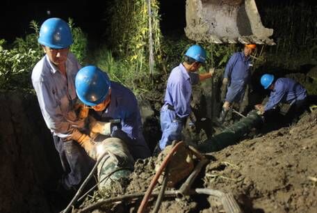 柯桥“十大百亿”交通工程中投资最大的项目钱滨线工程需移动供水管线,以保障公路施工。滨海供水公司考虑到夏季用水高峰,为把对群众用水影响降低到最低,工人们在深夜至凌晨施工。